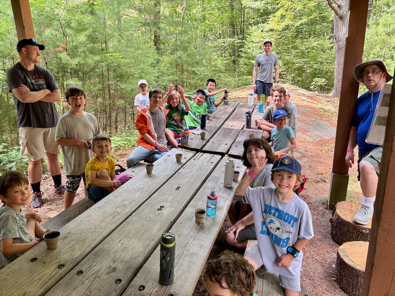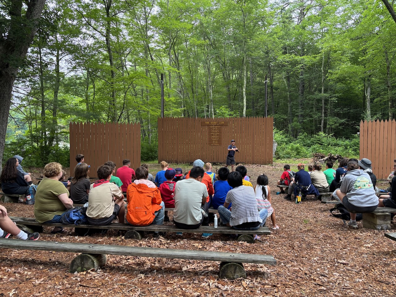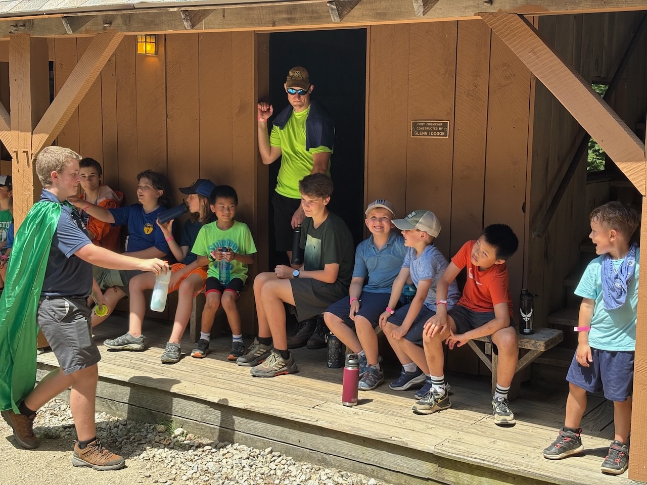 We fired rounds at the BB range, did a bit of group yoga, built egg drop devices, learned life-saving at the waterfront, hit bullseyes at the archery range, assembled circuits, played a round of mini golf, went down a backwoods waterslide, visited Fort Friendship, met firefighters, shared campfire stories, learned the ways of pirates at Pirates Cove, ate great BBQ, and performed skits the closing fire!