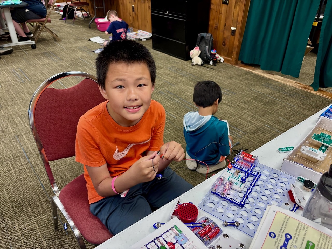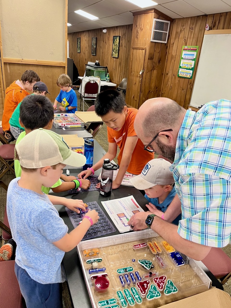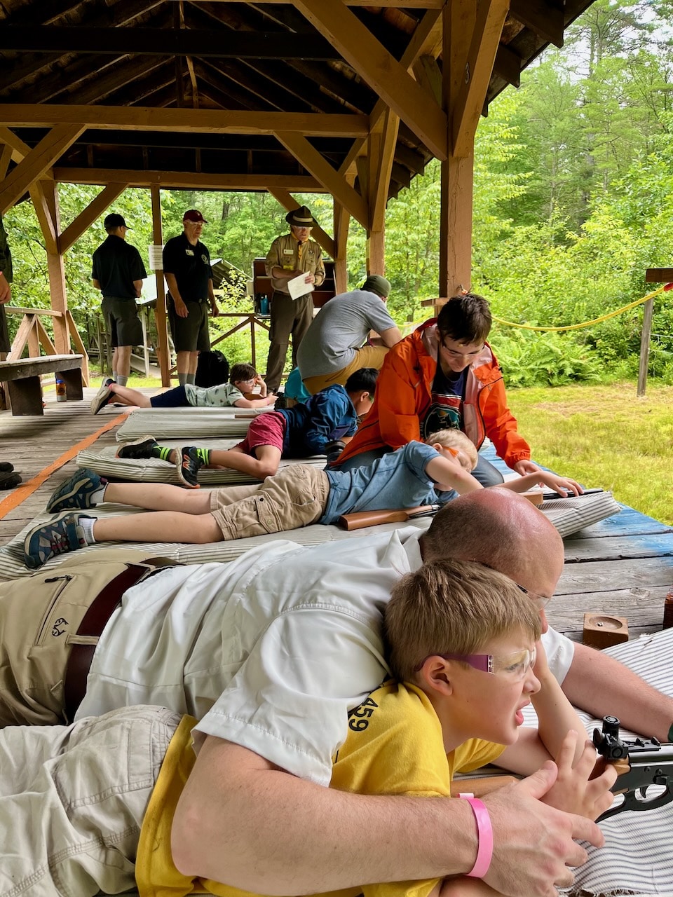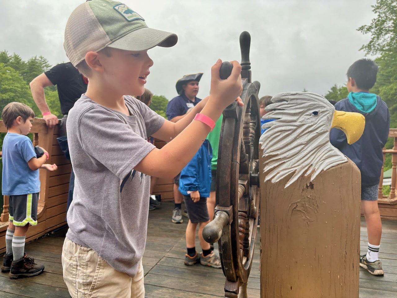 We fired rounds at the BB range, did a bit of group yoga, built egg drop devices, learned life-saving at the waterfront, hit bullseyes at the archery range, assembled circuits, played a round of mini golf, went down a backwoods waterslide, visited Fort Friendship, met firefighters, shared campfire stories, learned the ways of pirates at Pirates Cove, ate great BBQ, and performed skits the closing fire!